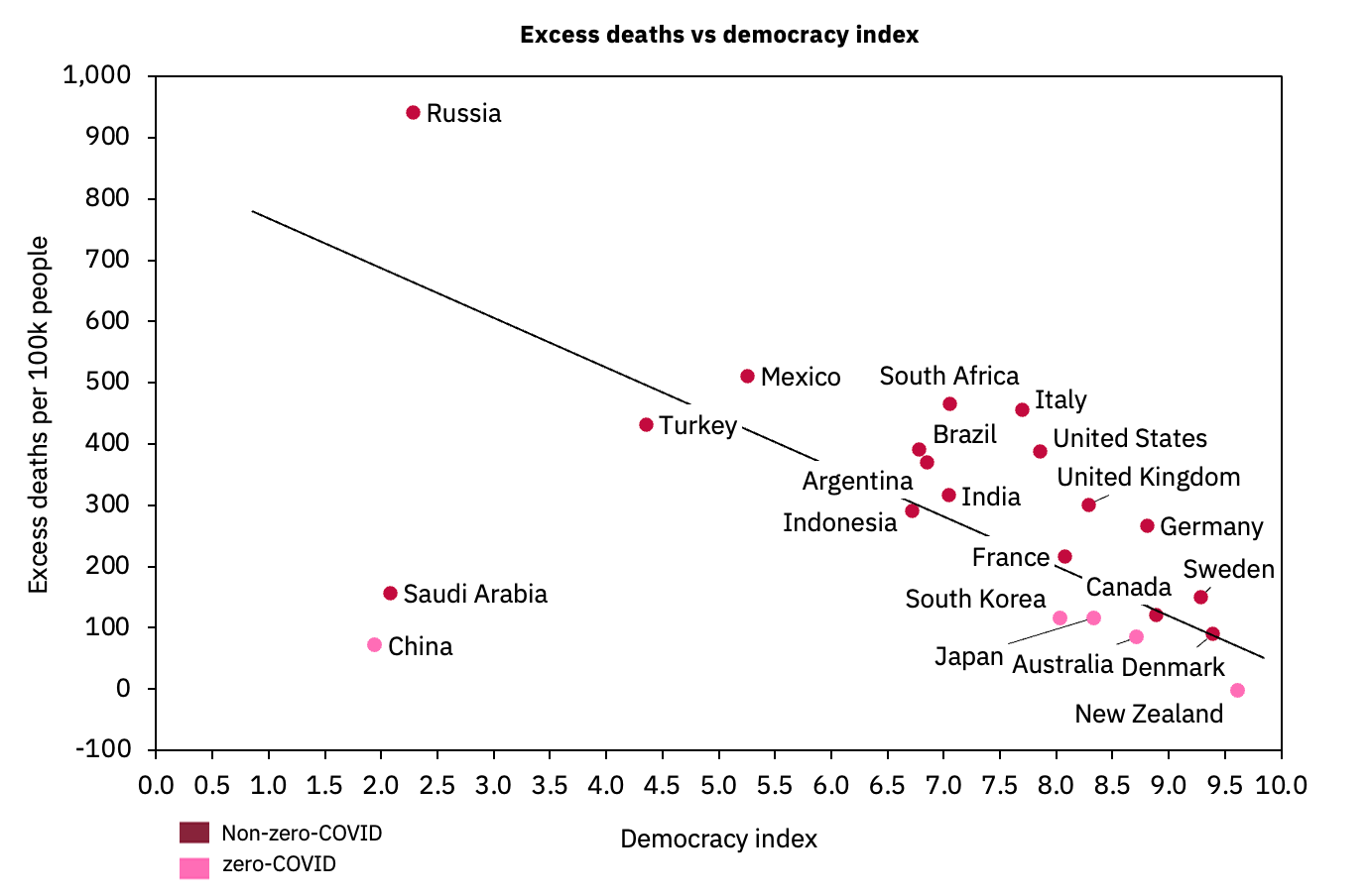 - Excess deaths vs democracy index analysis